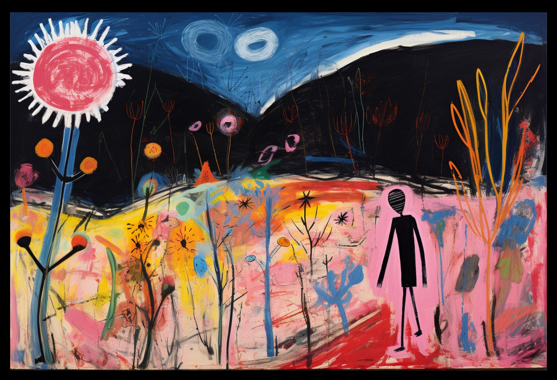 Art brut primitiva e richiamo all'infanzia, magia sapiente di lontana memoria, ridenti fiori nel paesaggio del cuore.