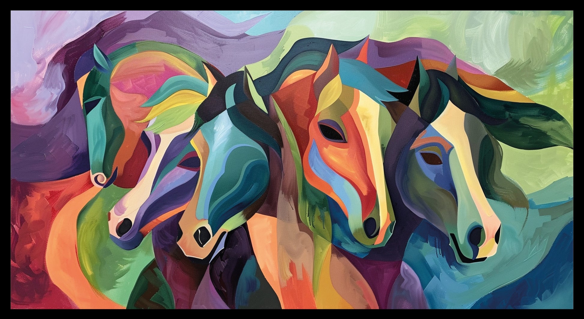 La nobiltà e la bellezza senza tempo dei cavalli, per questo quadro unico nei colori e nelle linee.